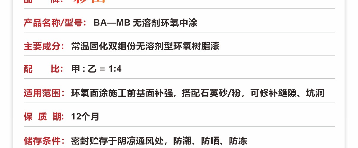 彩田BA-MB環氧中涂 【無溶劑型】