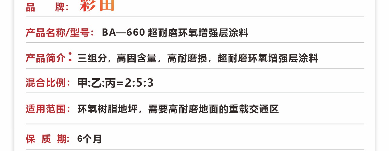 彩田BA-660超耐磨環氧涂料