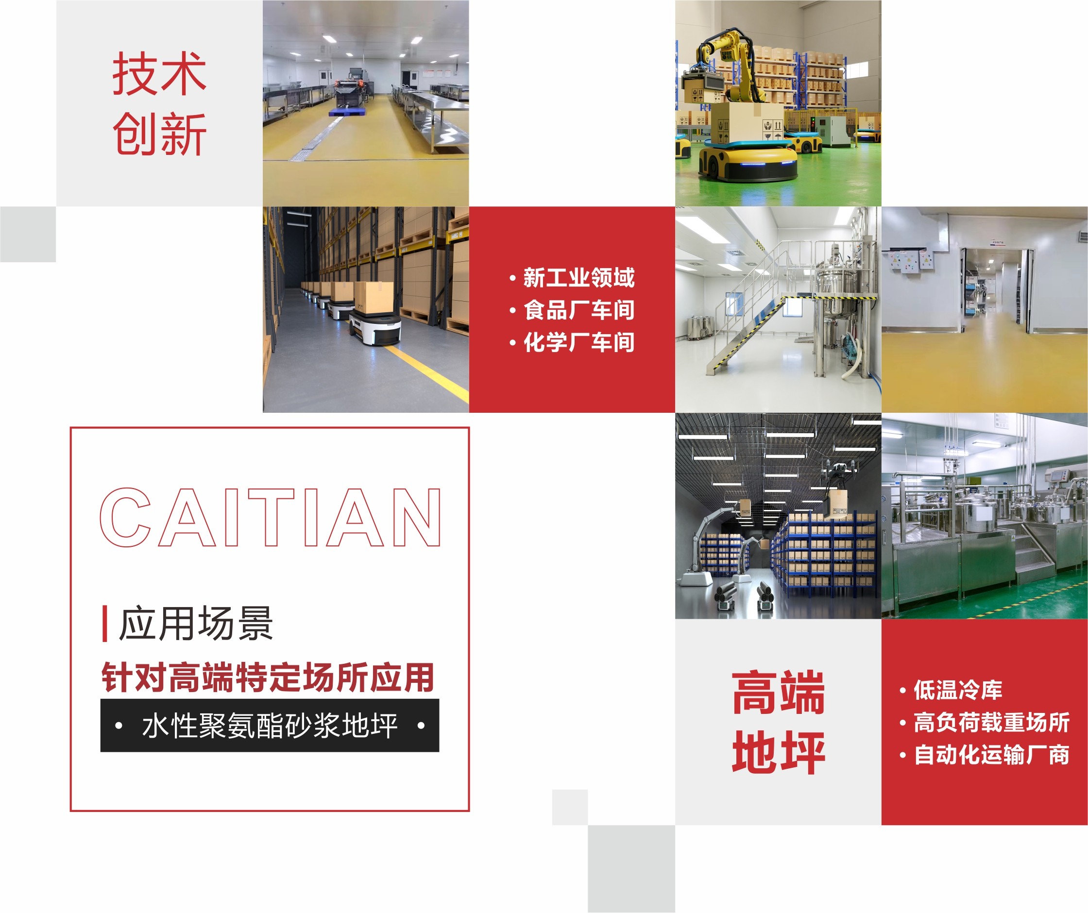 彩田化工擁有40000㎡自主產(chǎn)業(yè)園區(qū),擁有多項(xiàng)國家發(fā)明專利以及自主知識(shí)產(chǎn)權(quán),先進(jìn)的生產(chǎn)工藝技術(shù)搭配高性能環(huán)保地坪材料,滿足從研發(fā)到施工一體化的服務(wù)。