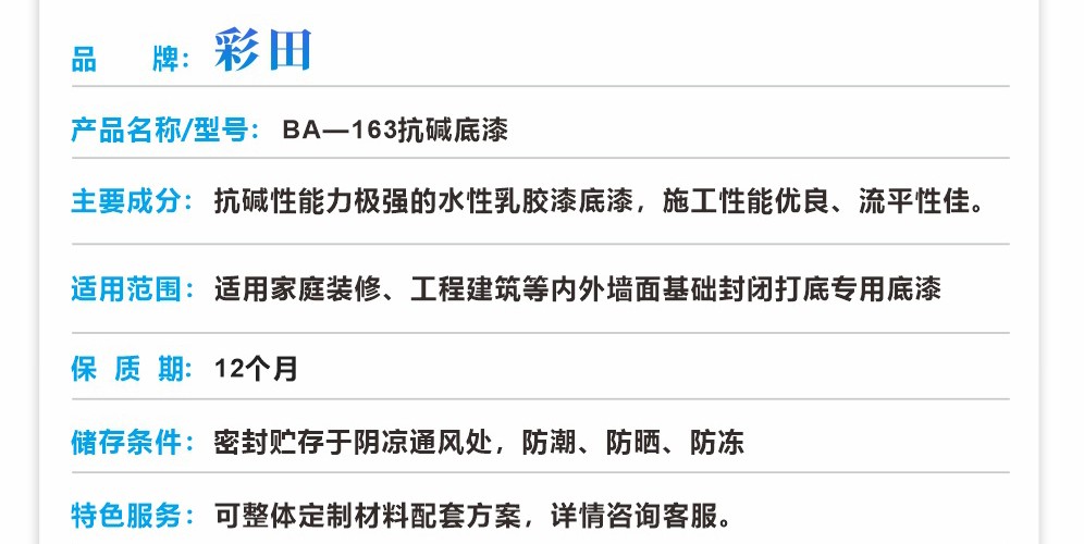 1、抗堿封閉底漆是一種抗堿性能力極強的水性乳膠漆底漆,施工性能優(yōu)良、流平性佳。 2、墻體附著力極佳,防水份滲漏好,抗藻類滋生能力強,可精心呵護墻體。 3、專為家庭裝修、工程建筑等內外墻面基礎裝飾而設計。